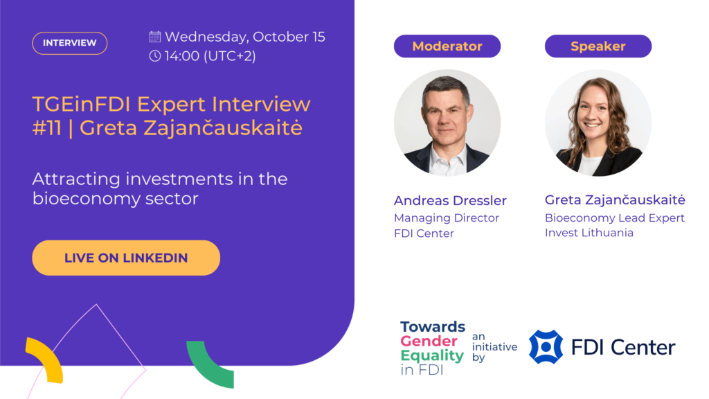 On October 15, we will host an interview with Greta Zajančauskaitė, Bioeconomy Lead Expert at Invest Lithuania, who will share her insights on how countries can position themselves to attract investment into the bioeconomy sector.